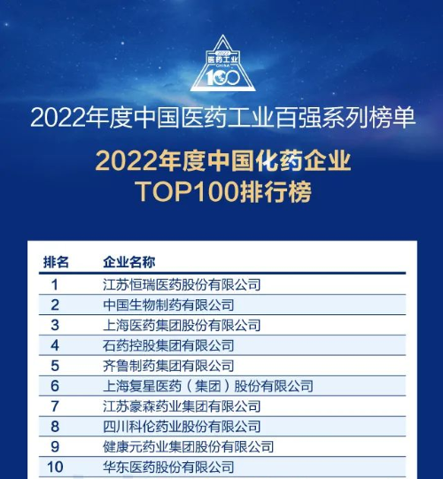 佳音频传!九游会医药再次蝉联中国化药企业百强榜首