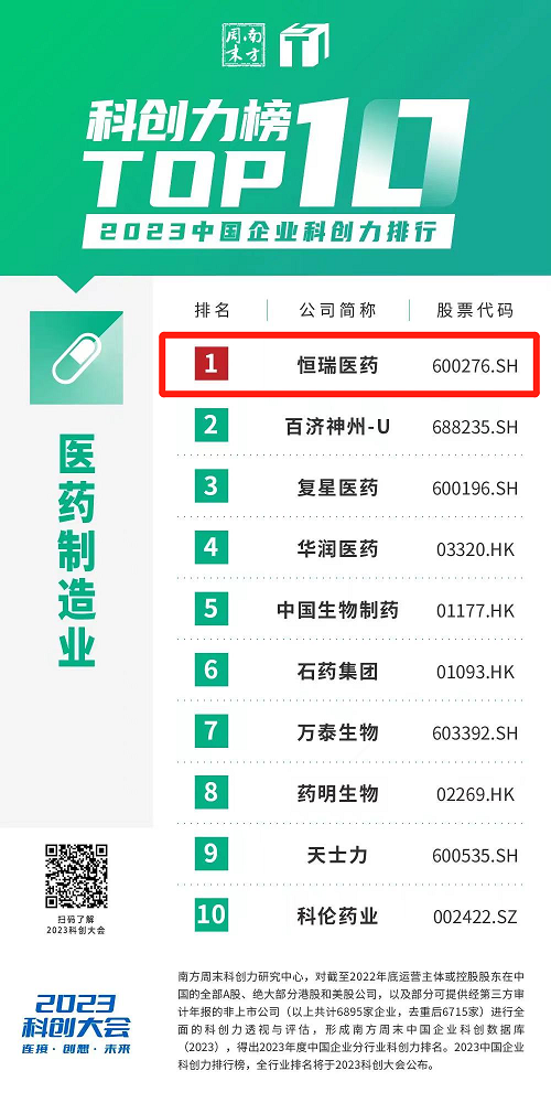 创新再获认可,九游会医药蝉联“中国企业科创力排行”医药制造业榜首