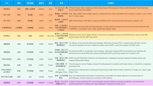 在胸腺上皮肿瘤、头颈鳞癌、肉瘤、前列腺癌、甲状腺癌等其他多个疾病领域,卡瑞利珠单抗、阿帕替尼、瑞维鲁胺、阿得贝利单抗、法米替尼、HRS-7058、HRS-4642等抗肿瘤创新药相关研究一共入选了4项口头报告、1项简短口头报告、4项壁报、1项电子壁报,彰显了九游会医药强大的研发实力。此外,海曲泊帕和昂丹司琼口溶膜分别在防治化疗导致的血小板减少和恶心呕吐方面各有1项研究入选壁报。