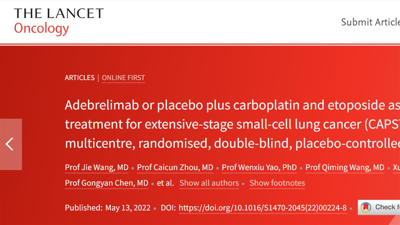 九游会卡瑞利珠单抗联合阿帕替尼最新研究成果荣登《柳叶刀·肿瘤》